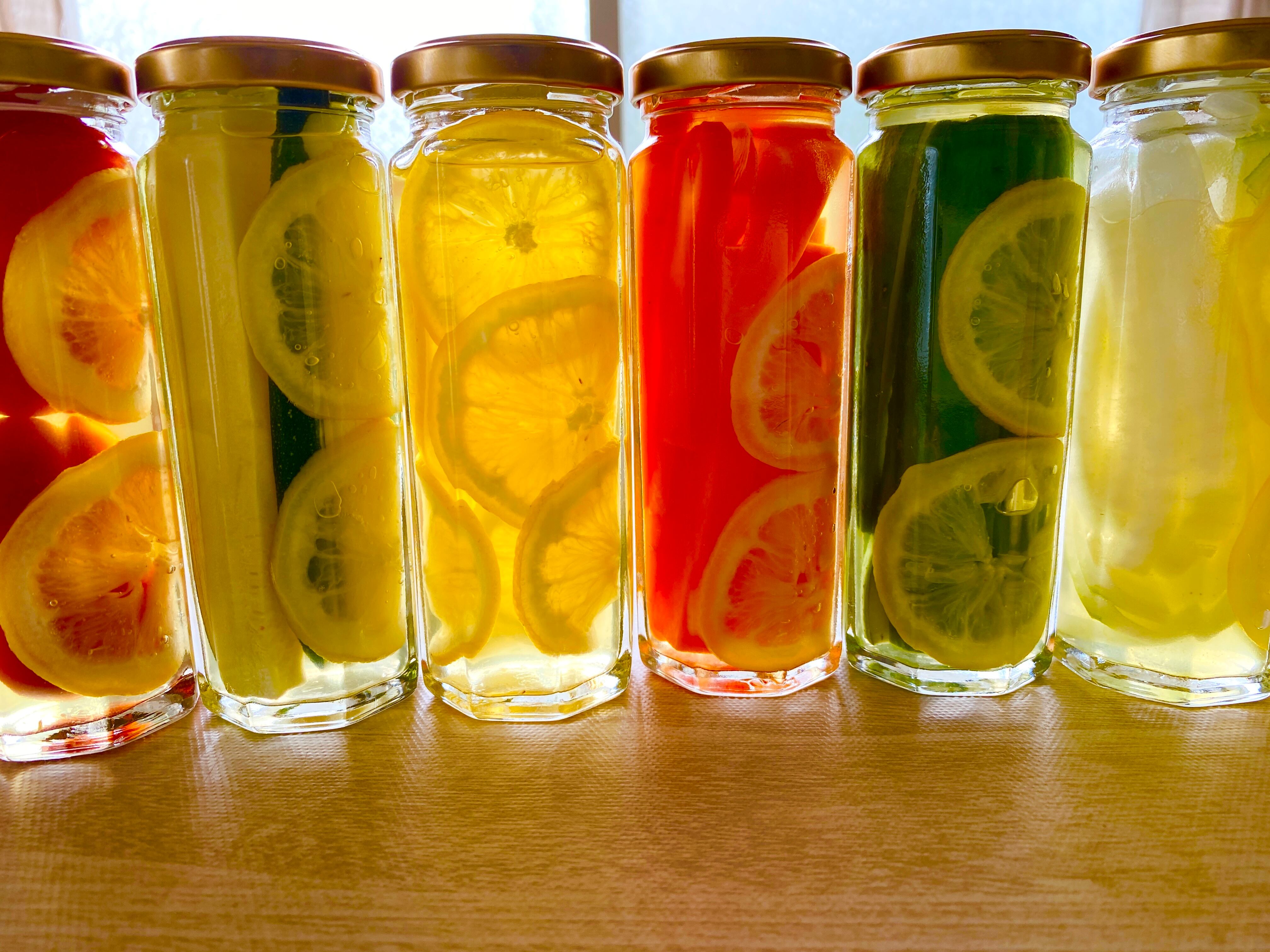 ・本商品は、クリアな液体のレモン酢で、140㎖のスリムなボトルサイズとなっています。